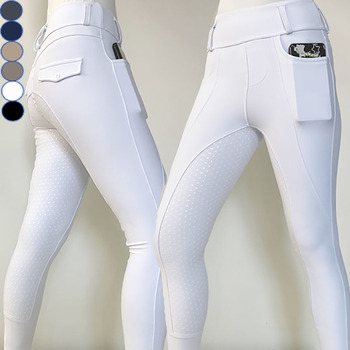 במלאי נשים רכיבה על סוסים לבן טימים מושב מלא סיליקון מכנסיים כיס אימון רכיבה על סוסים טייץ 4 דרך המתיחה